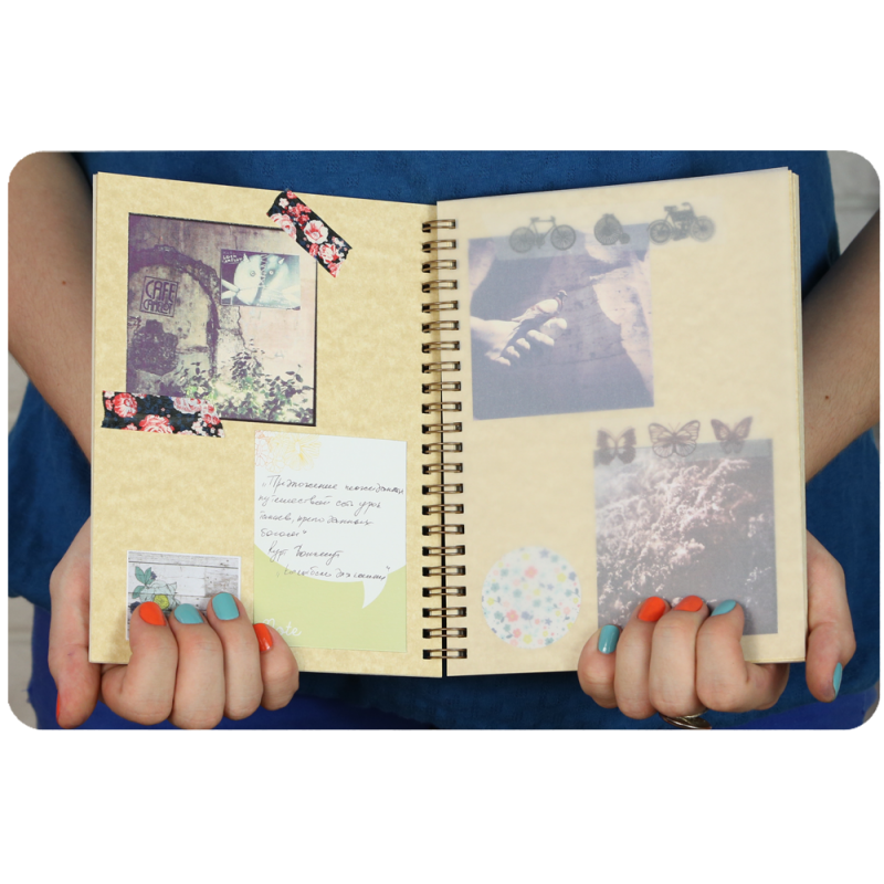 Печатать фотографии снова модно! Выберите из тысячи отснятых кадров самые лучшие и вклейте вот в такой веселый альбом. Рекомендуем клеить снимки на двусторонний скотч: это быстро, удобно и надежно. А еще мы настоятельно рекомендуем украшать Ваши альбомы не только фотографиями, как на нашем примере:) (декоративные элементы в комплект не входят!) Процесс творчества настолько увлекателен, что Вы захотите оформить так каждую из Ваших поездок и все знаменательные события!