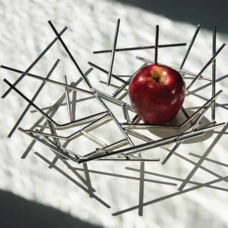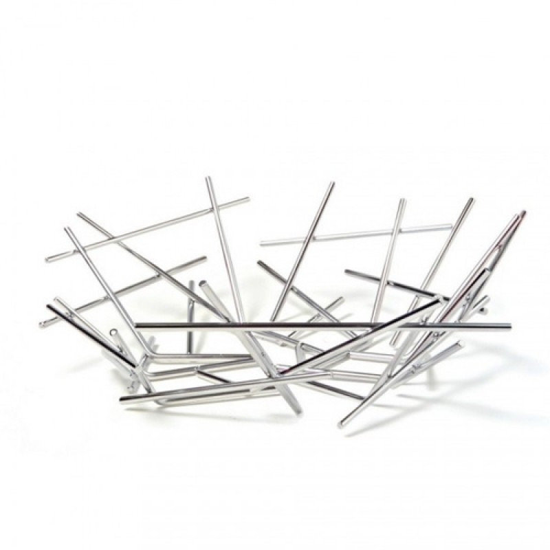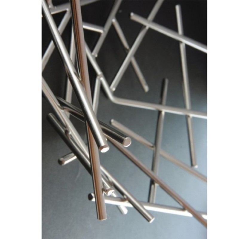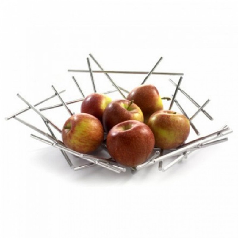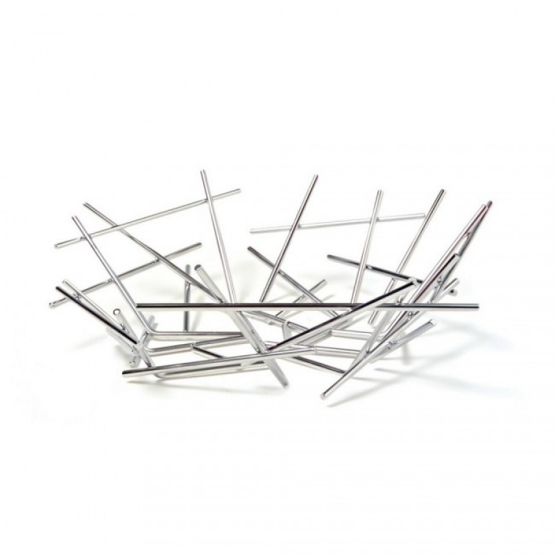 Новизна, свежесть и поэзия доминируют в эстетическом и конструктивном подходе, разработанном братьями Кампана в их серии Blow Up. В этой коллекции форма объектов создается игрой материала и пространства, порожденного стальными стержнями, которые будто бы в случайном порядке, наугад, соединила невидимая рука дизайнера. Всемирно известная серия, узнаваемая как в этой вазе, так и во многих других конструкциях талантливых братьев из Бразилии. Стильная и дорогая фруктовница будет прекрасным декором для Вашей кухни или гостиной. Фирменная подарочная упаковка от Alessi. Остерегайтесь дешевых низкокачественных подделок! Дизайн - братья Кампана.