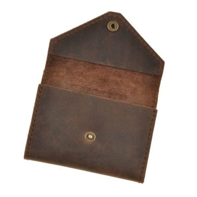 Кейс выполнен полностью вручную из высококачественной кожи, закрывается на кнопку, внутреннее пространство разделено на три отделения. Карточки доставать удобно благодаря эффекту гармошки - все сразу на виду после открытия.