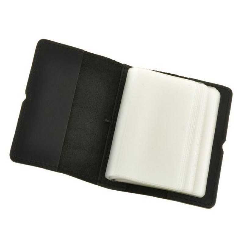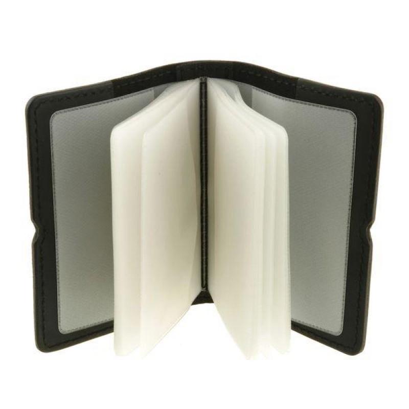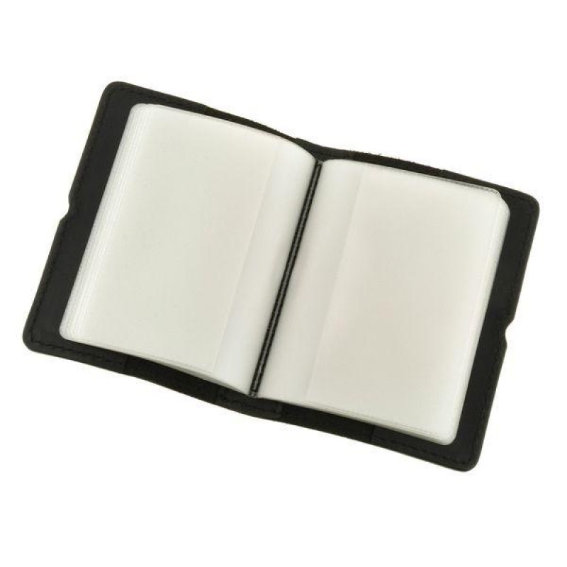 Ищете удобный аксессуар для хранения ваших карточек? Присмотритесь к этому кард-кейсу - лаконичный дизайн, натуральная кожа, 20 пластиковых отделений для карточек (+2 дополнительных кармашка). Он очень удобен в использовании, так как выполнен в виде книжечки - пролистали и быстро нашли нужную страничку, не нужно пересматривать все карточки. Книжечка надежно укреплена резинкой, так что можете не боятся, что все откроется.