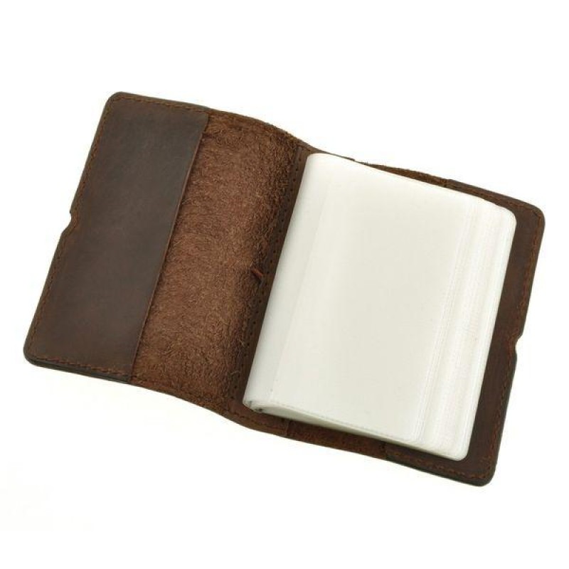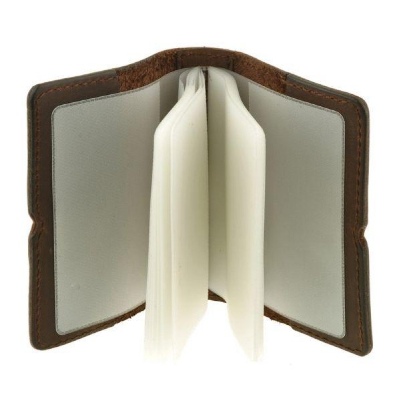 Ищете удобный аксессуар для хранения ваших карточек? Присмотритесь к этому кард-кейсу - лаконичный дизайн, натуральная кожа, 20 пластиковых отделений для карточек (+2 дополнительных кармашка). Он очень удобен в использовании, так как выполнен в виде книжечки - пролистали и быстро нашли нужную страничку, не нужно пересматривать все карточки. Книжечка надежно укреплена резинкой, так что можете не боятся, что все откроется.