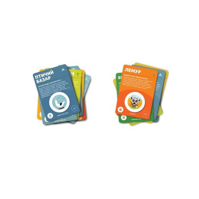 • Комплект игровых карточек на выбор «животные» или «достопримечательности»;