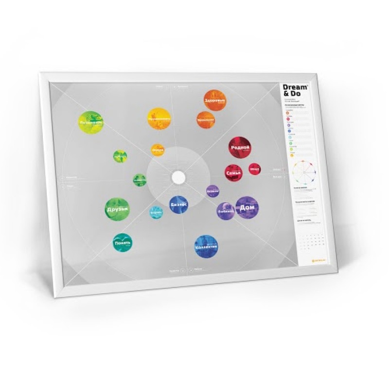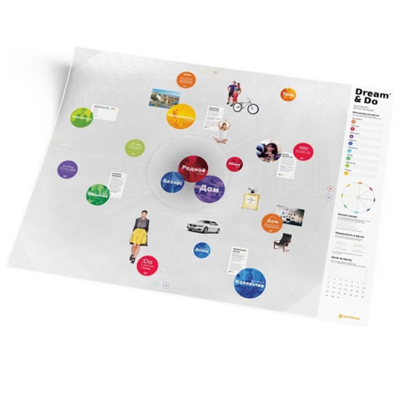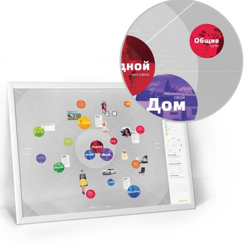 Карта имеет восемь секторов - восемь сфер жизни. На карту можно клеить свои изображения для визуализации, стикеры, которые входят в набор, и все что душе угодно.