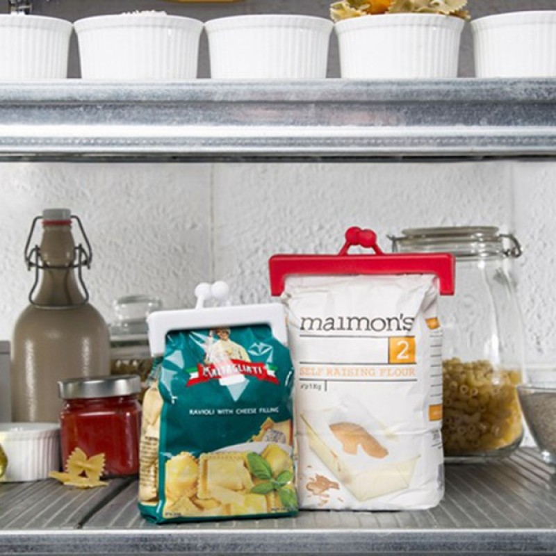 Две клипсы для пакетов от компании Peleg Design помогут сохранить продукты свежими и не дадут содержимому рассыпаться. Тем более, что зажимы для пакетов обладают действительно оригинальным дизайном: они напоминают застежки маленьких кошельков. Яркие цвета и удобная конструкция делают эти зажимы лучше остальных!