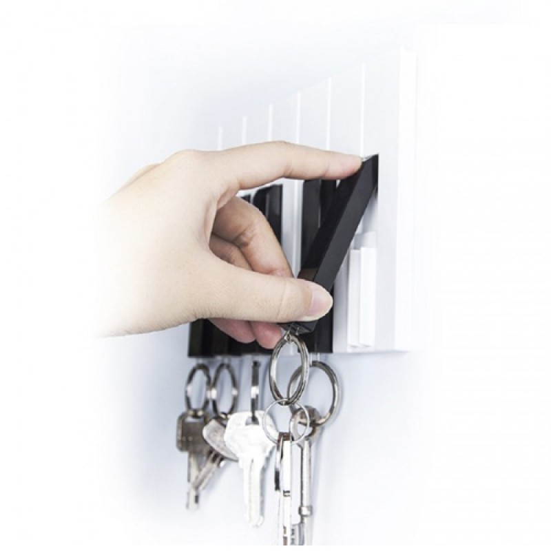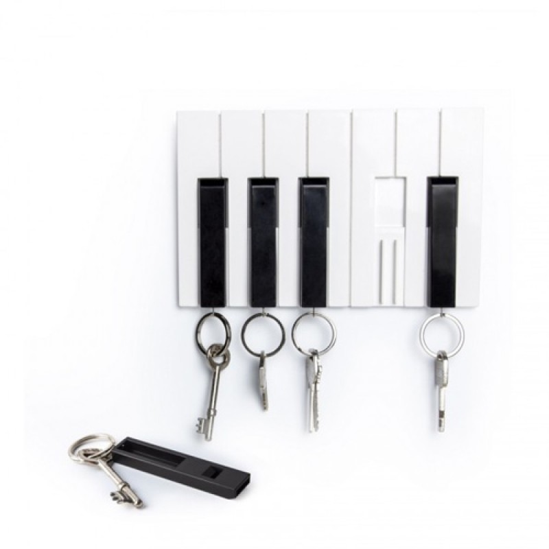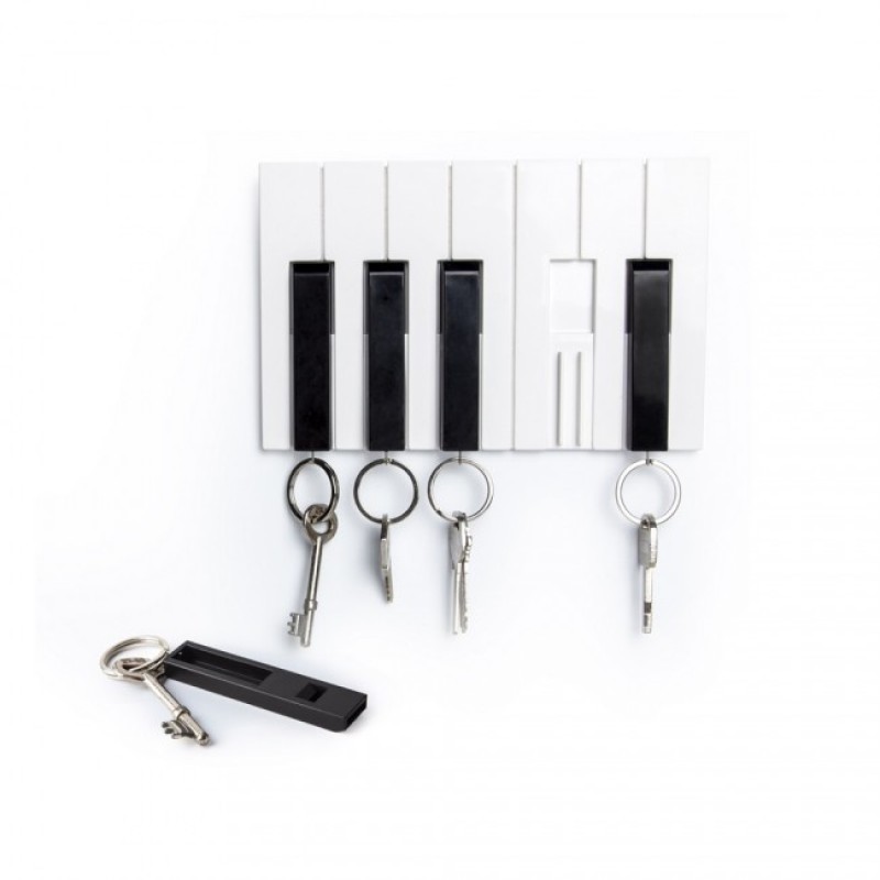 Необычный держатель для ключей Key Piano от дизайнерского бренда Qualy из Таиланда поможет держать Ваши ключи в порядке и сохранности. Четко, как по нотам - ведь теперь ключи не потеряются и никто не будет их искать в карманах пальто, шкафчиках или на полках. Пять брелков в виде черных клавиш от пианино - хватит на каждого члена семьи! Ну и еще одна интересная музыкальная составляющая этого оригинального набора - каждый брелок является также и свистком, который может пригодиться, чтобы позвать на помощь на улице, либо чтобы просто насвистывать любимую мелодию.