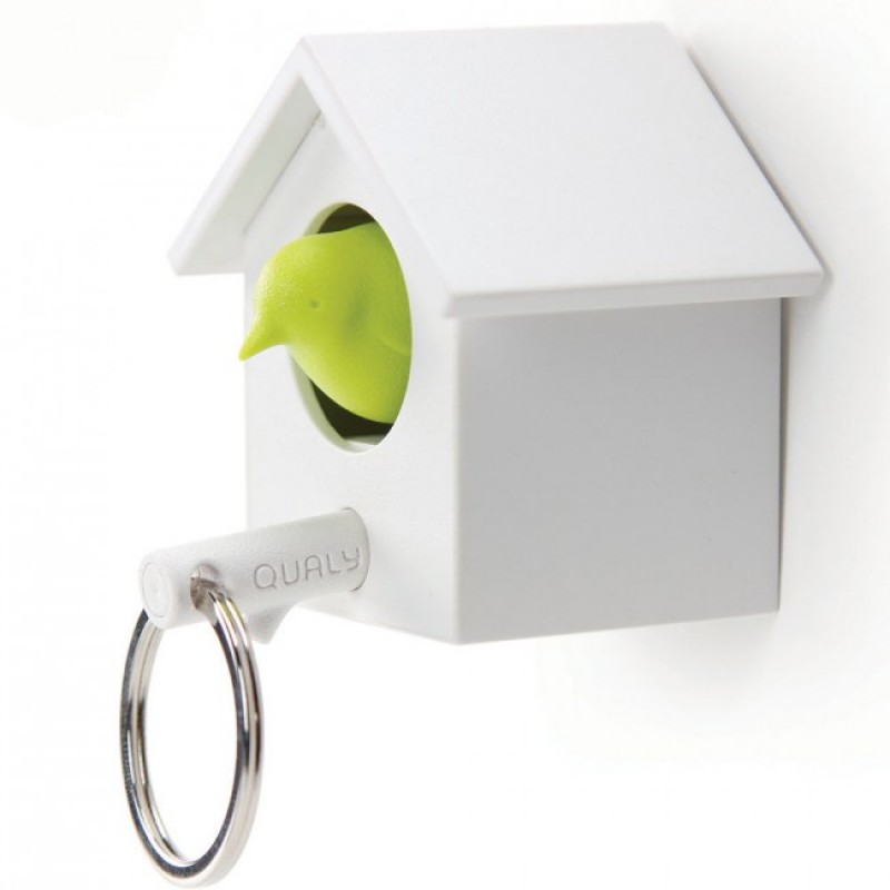 Ключница от компании Qualy обладает одной маленькой особенностью – она не только ключница, но еще и брелок на ключи, который умеет свистеть! Дома Вы можете наблюдать птичку, которая мирно выглядывает из своего домика и симпатичную веточку, однако, как только Вам нужно куда-то уходить – забирайте ветку из домика! Не бойтесь – птичка не расстроится. Она просто отправится спать и ждать, пока Вы вернетесь и поставите веточку на место. Cuckoo Keyring это и брелок для ключей и ключница на стену, купить которую можно в нашем интернет магазине стильных вещей!