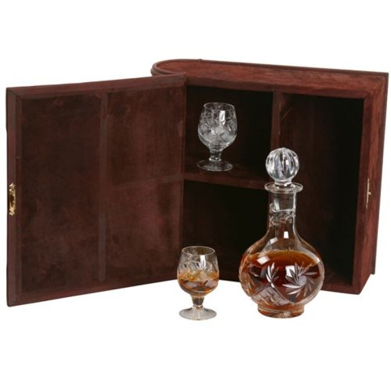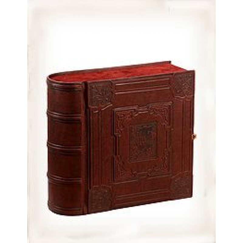 Это идеальный подарок, который произведет неизгладимое впечатление на ценителей крепких напитков. Такой мини-бар можно разместить и в рабочем кабинете, и в квартире, ведь выглядит он как добротный старинный книжный том, который надежно сохранит рюмочки и любимый напиток в хрустальном графине для приятной компании.