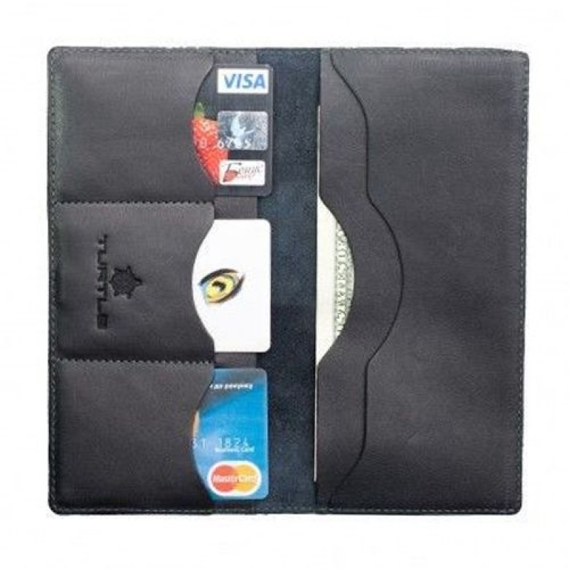 Кожаное портмоне для денег Turtle, черный - модный подарок для людей, предпочитающих классику в стиле. Вместительное портмоне - качественный подарок для современного человека. Портмоне изготовлено из натуральной кожи.