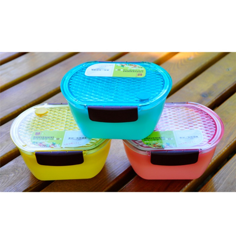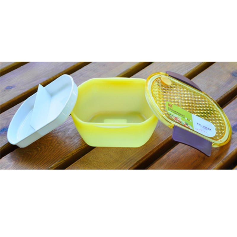 Контейнер снабжен герметичной крышкой с клапаном, благодаря чему вы можете разогревать обед в микроволновой печи, не снимая крышек. Ланч-бокс имеет 2 этажа, второй этаж с двумя отделениями. В крышке есть отверстие с силиконовой заглушкой. Размеры: 17х14х8 см Полезный объем нижнего этажа - 500 мл. Материал: пищевой пластик, можно использовать в микроволновой печи. Имеет силиконовую прокладку: можно использовать для первых блюд. Фирма-производитель: WISDOM CREATE, КНР.