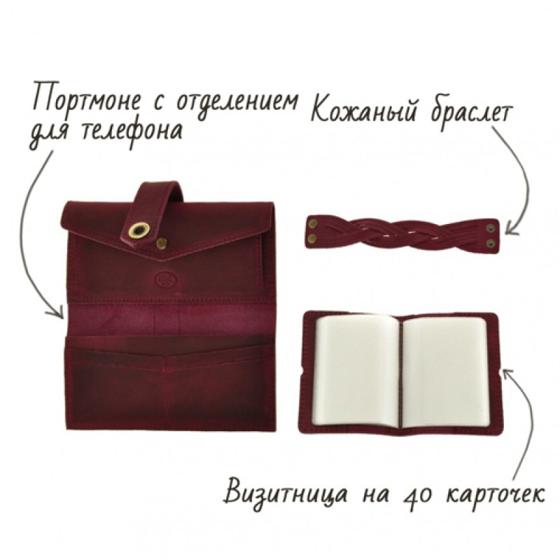 | Размер (см) | портмоне (10х19 см), кард-кейс (8х11 см), браслет (3,5х20,5 см), открытка (10х15 см) |