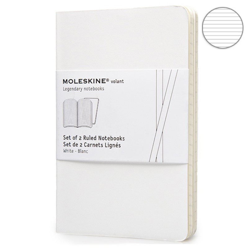 Набор блокнотов Moleskine Volant белого цвета маленького размера. В каждом блокноте по 76 страниц, 16 из которых отрывные, и внутренний карман.