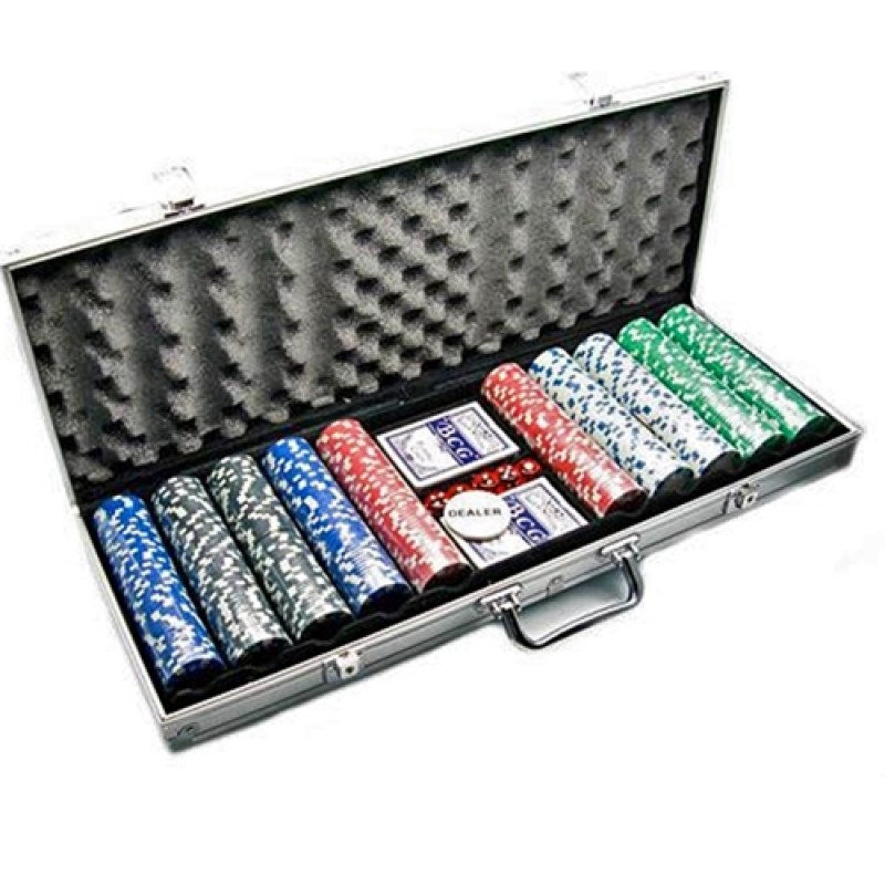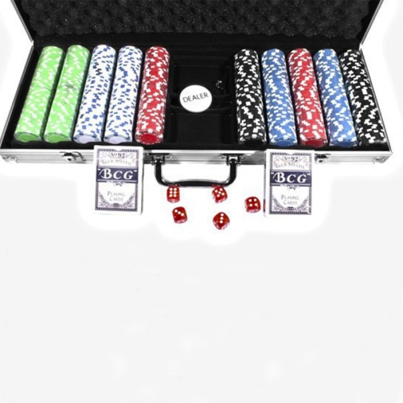 2 колоды карт, 500 фишек, 5 кубиков, дилерская фишка.