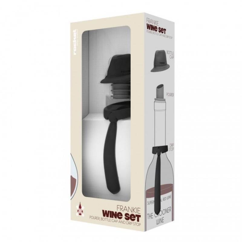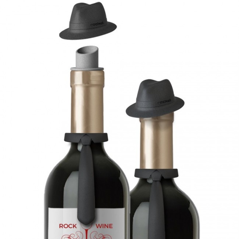В состав этого набора входят: воротник для бутылок, который не позволяет каплям стекать по бутылке, специальный дозатор, который упрощает процесс наливания вина и вакуумная пробка для вина, которая позволит сохранить аромат уже открытому напитку. Но самое основное в наборе – его стиль. Это не просто винная пробка, это – шляпа гангстеров 30-х годов. А вместо воротника для бутылок – стильный черный галстук. Бутылка вина со всем этим набором превращается в солидного мужчину, удивляя этим всех окружающих. Такие винные наборы купить можно у нас на сайте.