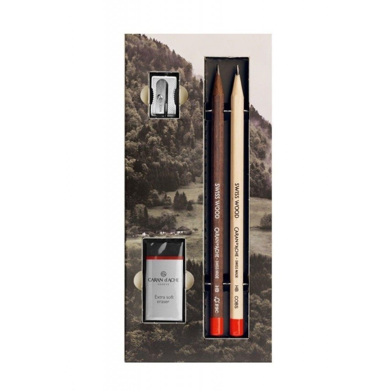 Набор Карандашей Caran d'Ache Swiss Wood, 2шт. + гумка + точилка - на официальном сайте интернет-магазина "Супермаркета All-market"
