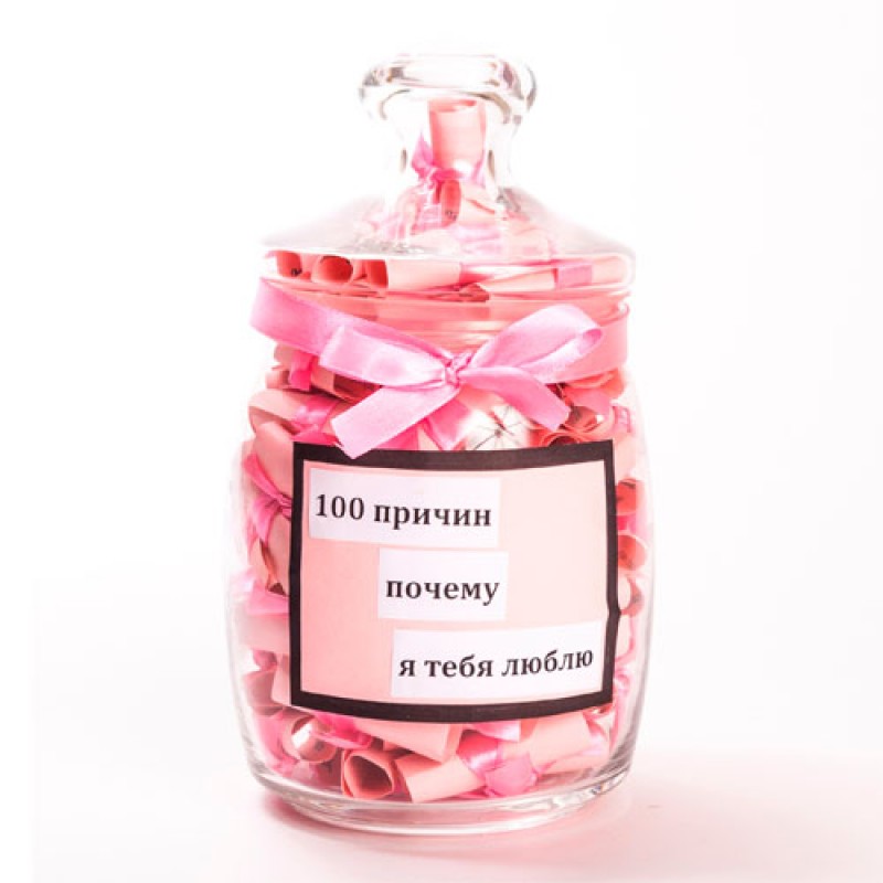 Предлагаем подарить прекрасный подарок в виде баночки с объяснением "Почему я тебя люблю".