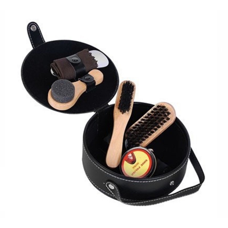 В наборе: крем для обуви, щётка (2), губка, тряпочка и лопатка; в чёрном футляре.
