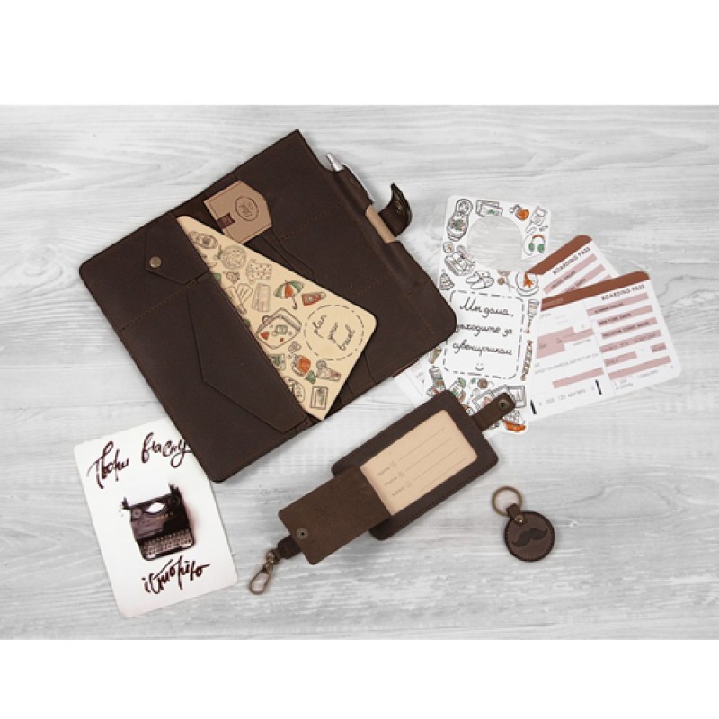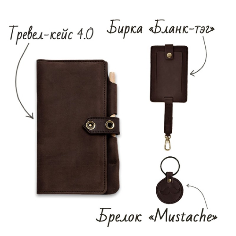 | Размер (см) | тревел-кейс (13х22 см), бирка для багажа 22,5х7,5 см), брелок (4х4 см), открытка (10х15 см) |