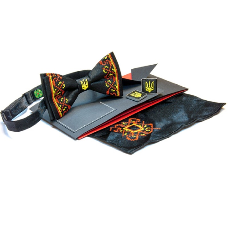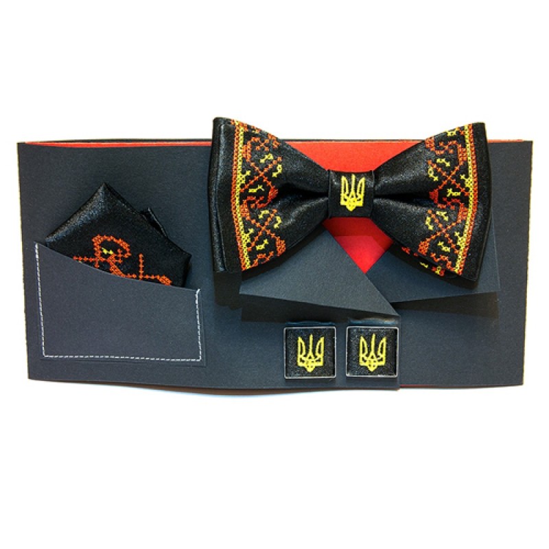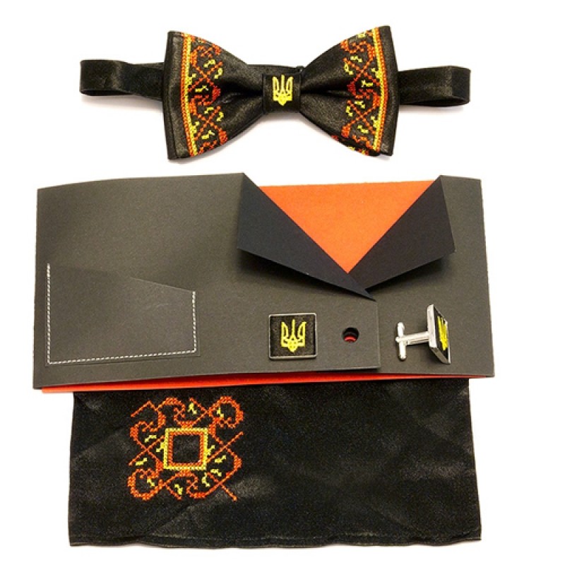 В набор входят вышитая бабочка, нагрудный платочек и замечательные запонки.
