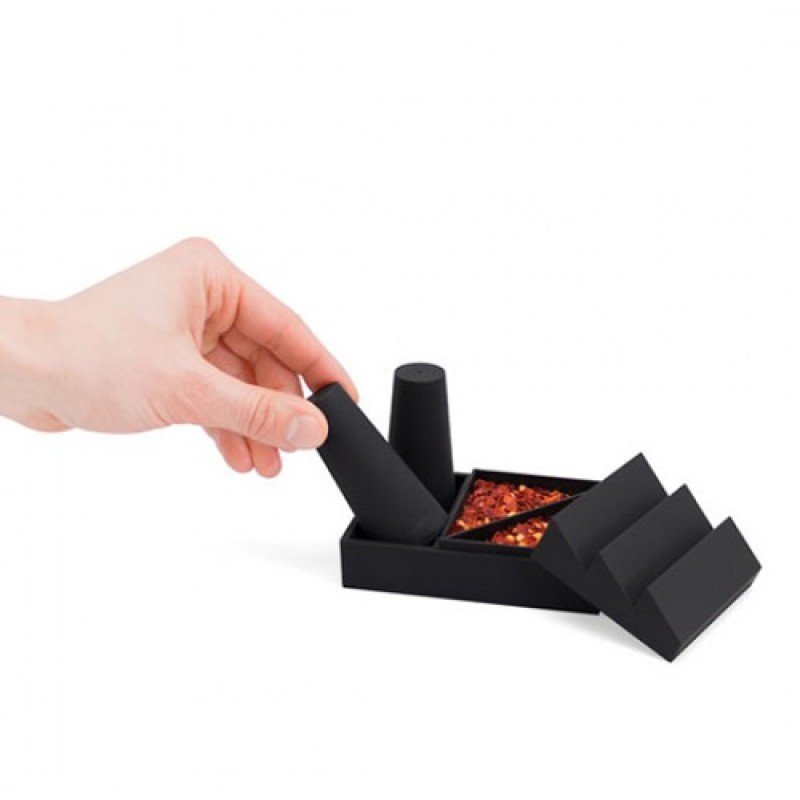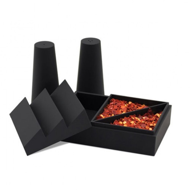 Ищете стильный и удобный способ хранить специи, а обычные солонки и перечницы недостаточно практичны и легко ломаются? Самое время купить солонку и перечницу Food Factory от английского бренда Luckies! В комплекте с солонкой и перечницей идет емкость для специй, разделенная на две части, идеально подходящие для хранения Ваших любимых специй. А прорезиненный материал делает этот набор практически неубиваемым. Идеальный выбор для людей, которые ценят практичность и стиль на своей кухне! Основные характеристики: Держите все необходимые специи всегда под рукой Soft touch Можно мыть в посудомоечной машине Необычный и стильный подарок человеку, который любит готовить Поставляется в фирменной подарочной упаковке от Luckies Оригинальный продукт бренда Luckies