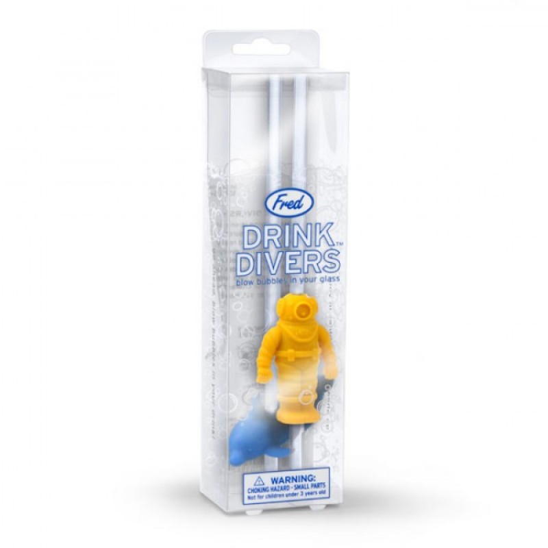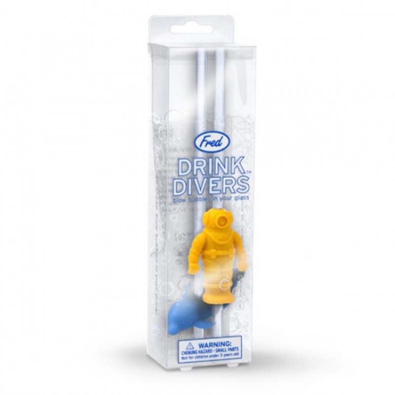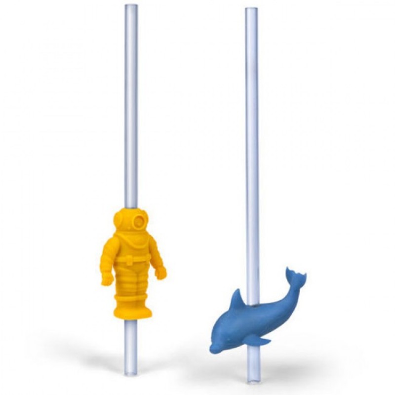 Ваши дети просто обожают пить сок с помощью трубочки для напитков? Или, может, Вы сами очень любите пить что-либо с трубочкой? Тогда хватит использовать обычные и неприметные трубочки! Подводный отряд уже плывет на помощь! Если Вы хотите удивить своих близких, то почему бы не окунуть дельфина или человека в стакан? Не на самом деле, конечно, но все равно будет забавно. Надо всего лишь купить трубочки для напитков от Fred&Friends и веселое настроение обеспечено! Такими трубочками можно пить что угодно, даже густой йогурт – они достаточно велики в диаметре. Купить трубочки для коктейлей можно у нас! Основные характеристики: Набор состоит из двух трубочек – с желтым водолазом и синим дельфином Изготовлено из высококачественного пищевого ABS пластика Поставляется в фирменной подарочной упаковке от Fred and Friends Оригинальный продукт бренда Fred and Friends.