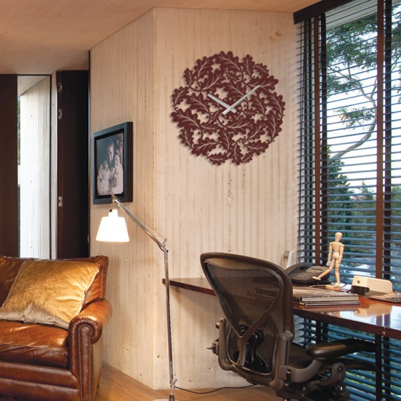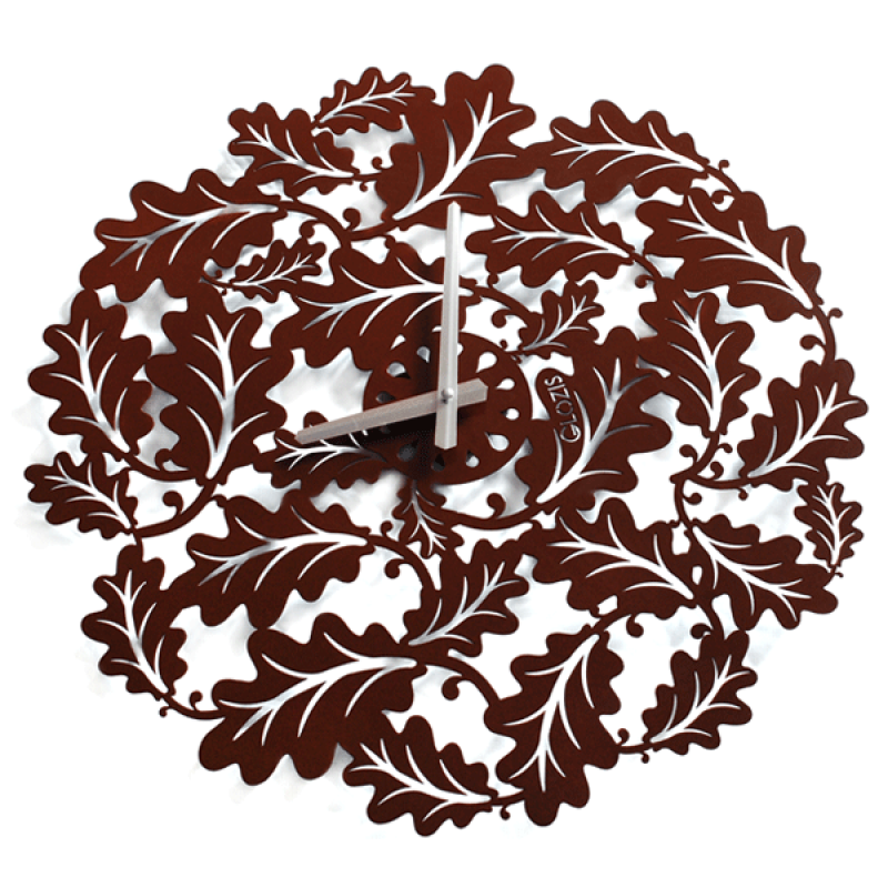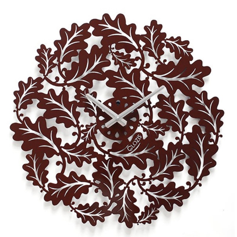 Настенные металлические часы Glozis Eternity. Причудливая композиция из шоколодно-коричневых дубовых листьев образует кругообразную фигуру с цыферблатом по центру.Дуб – симвом могущества, долговечности и богатства. Незря изделия из дуба невероятно красивы, прочны и высоко ценимы любителями прекрасного и роскошного. Огромные, необъятные дубы из сказок не миф, а реальность... Дотрагиваясь до грубой, шероховатой коры, кажется что соприкасаешься с вечностью (Eternity), окунаешься в многовековую историю этого прекрасного дерева. Весь этот смысл создатели Glozis попытались воплотить в названии настенных часов – «Eternity».