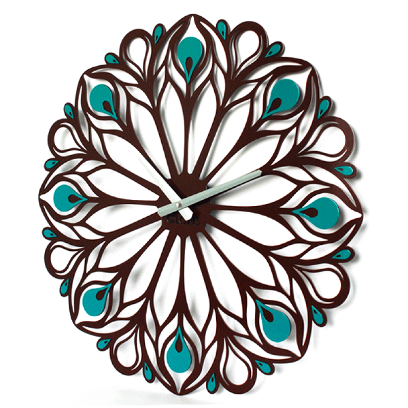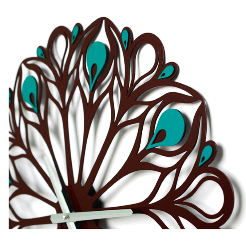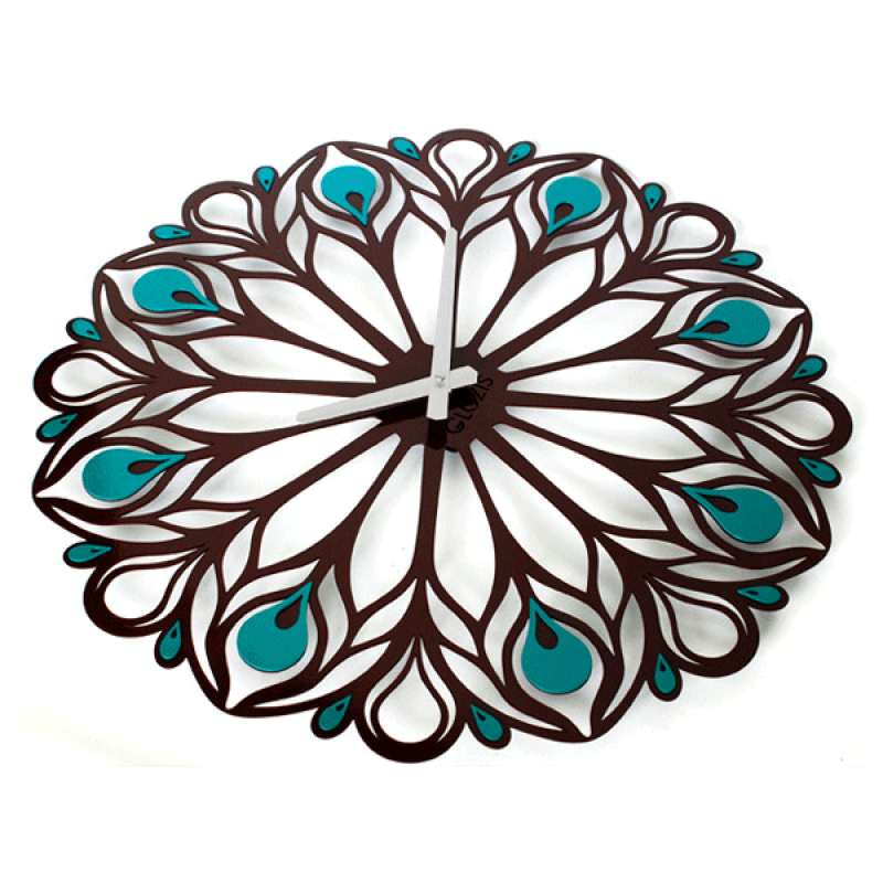Настенные часы Glozis Peacock Feather – уникальный предмет декора, яркий, неимоверно красивый и завораживающий. Неповторимая красота декоративной птицы павлина вдохновила нас на создание дизайнерских часов с узором, напоминающим хвост павлина. По фен-шую считается, что если чаще смотреть на хвост павлина, то это способствует славе, удачи и общественному признанию, а изображение этой птицы так же привлекает успех. Настенные дизайнерские часы выполнены из металла с порошковой покраской, что гарантирует насыщенность цвета и износостойкость изделия. Красивая комбинация шоколадно-коричневого и бирюзового цветов приковывает внимание и привносит в интерьер оригинальность. Часы состоят из двух слоев: первый коричневая основа, второй – бирюзовые накладки в форме «глаза» на пере павлина.