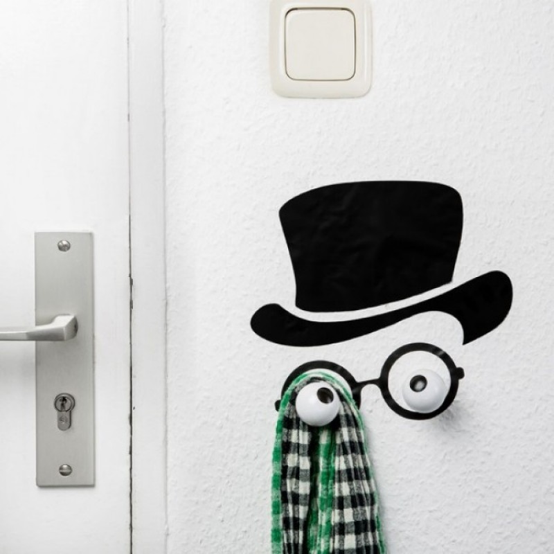 Мистер Hookly – уважаемый джентльмен, который готов подержать Вашу одежду или сумку на своих… Глазах! Довольно необычное решение для вешалки, но в этом и есть смысл – такая удивительная и оригинальная вешалка будет поднимать Вам настроение перед уходом на работу и при возвращении домой, а это очень важно. В комплекте: два глаза, выполняющие роль крючков, набор для монтажа и наклейка на стену в виде шляпы и очков.