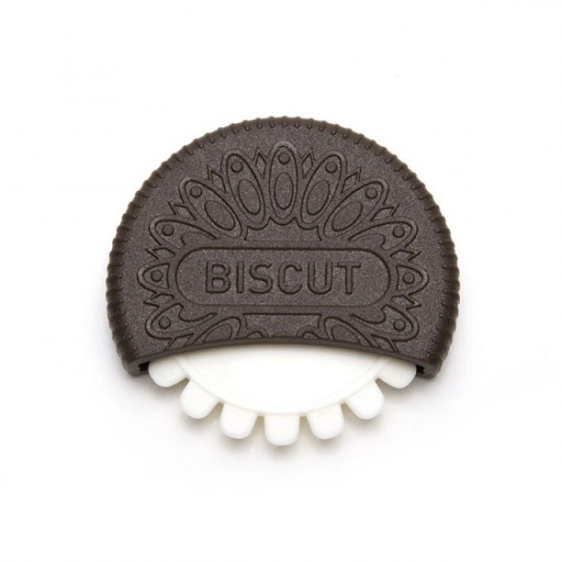 Очень оригинальный валик для нарезки теста от компании Peleg Design идеально подойдет для нарезания печенья – он режет «пунктиром», что позволяет в последствии отделить печенье без всяких проблем, не теряя при этом тесто зря. Помимо своей практичности, Biscut может похвастать очень оригинальным дизайном – вы будете резать печенье печеньем! Ролик для нарезки теста купить можно в Декор Бутике!