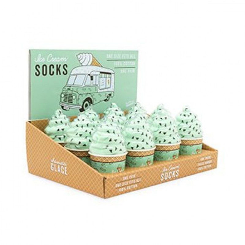 Носки Ice Cream Socks Mint Choc Chip от Luckies станут отличным подарком для Ваших друзей. Эта версия представлена в нежном мятном цвете с аппетитными вкраплениями шоколада:-) Упакованы носки в подарочной упаковке в форме мороженого рожка – стильно и неожиданно. Будьте оригинальны и подарите практичный и стильный подарок себе или своим друзьям - Ice Cream Socks Mint Choc Chip от Luckies. Основные характеристики: В упаковке 1 пара носков Универсальный размер - подходит для всех Носки изготовлены из 100% хлопка Уникальный подарок для любимых людей Поставляется в фирменной подарочной упаковке от Luckies Оригинальный продукт бренда Luckies
