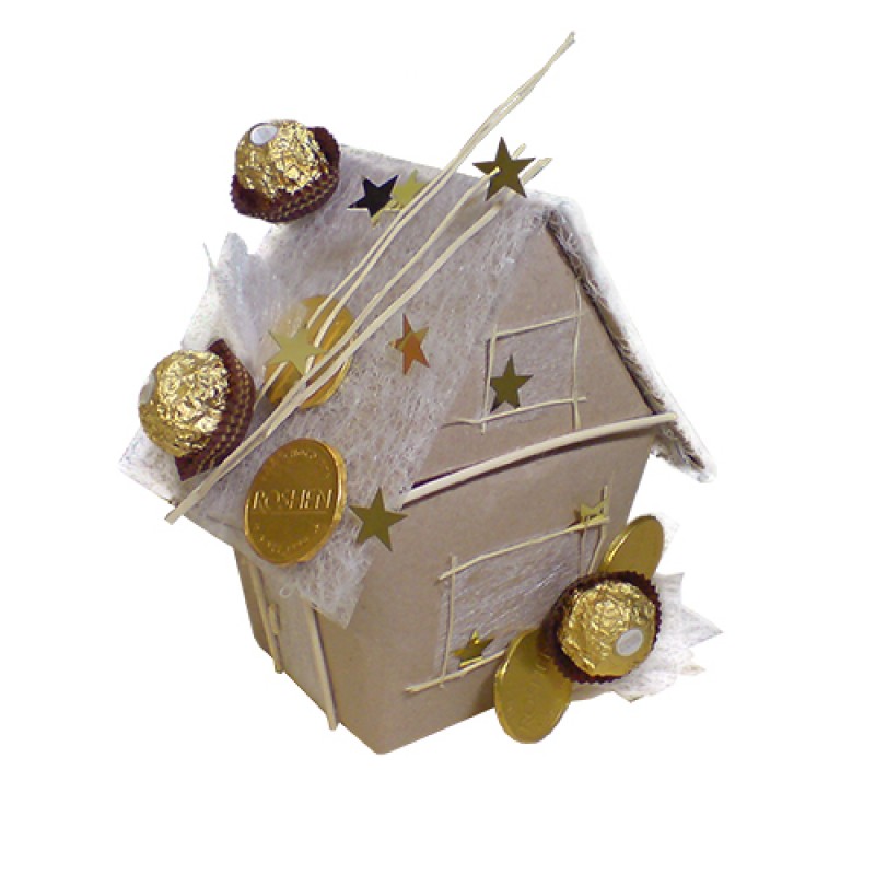 Новогодний букет-композиция из конфет в виде Raffaell‘ного домика в стиле "рустик". Состав: коробка Raffaello (150 г) + 3 шт. Ferrero Rocher + шоколадные монетки 7 шт. (общее количество: 25 конфет), новогодний декор. Размер: 18 х 18 х 20 (h) см. * букет замеряется по самым выступающим верхним точкам: то-есть по ручке корзины, по самым торчащим цветкам и т.п, а не по размеру коробочки или окружности донышка корзинки. Срок изготовления 1-2 дня.
