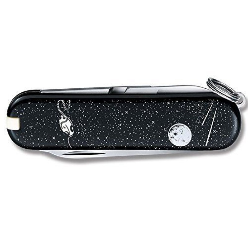 Victorinox Classic Space Cleaner- это оригинальная новинка от известного швейцарского бренда Victorinox. Нож имеет неповторимую черную рукоятку с характерным рисунком космической тематики. Victorinox Classic Space Cleaner это компактный и удобный многофункциональный инструмент с набором из 7 функций, который никогда не будет лишним в вашей сумке или кармане.