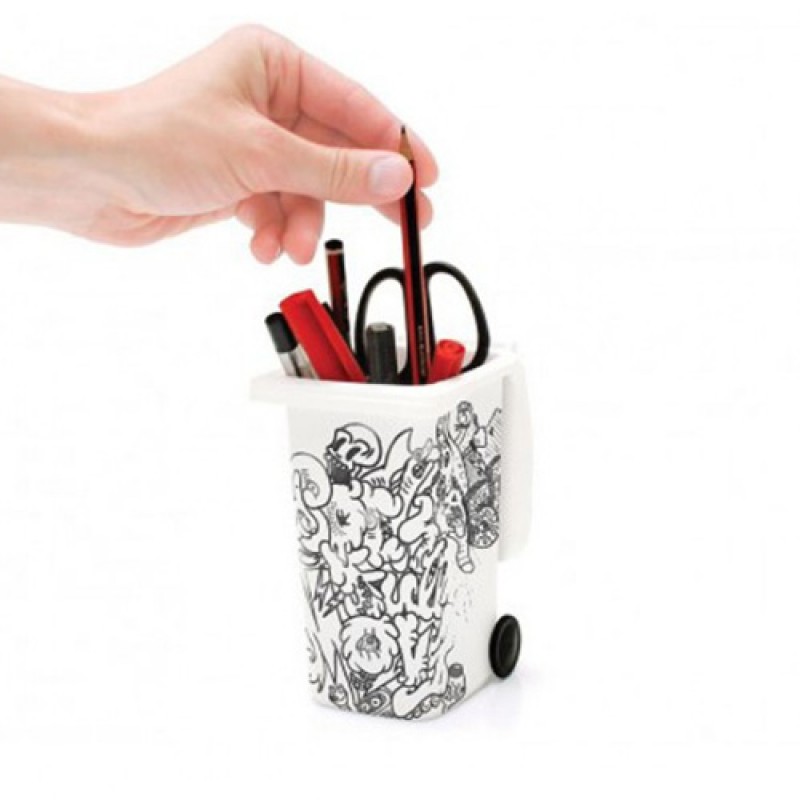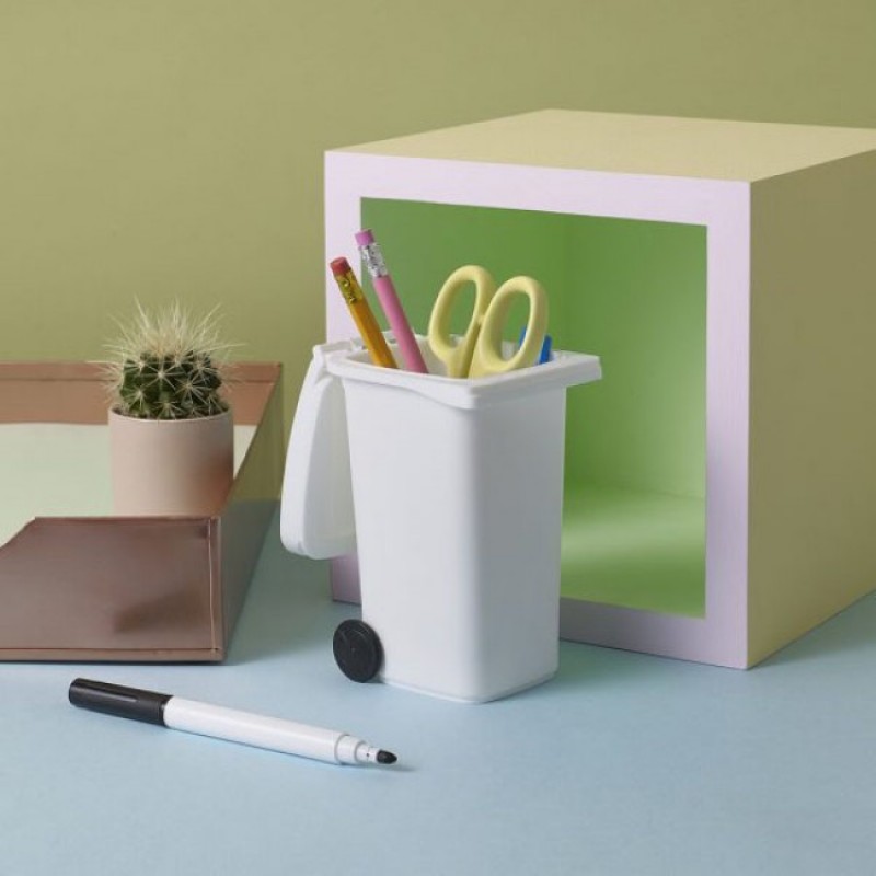 Wheelie Bin – это не просто место для хранения ручек, туда можно выбрасывать небольшой мусор, можно хранить там мелочь и другие маленькие предметы. Также, настольные подставки для ручек и карандашей Wheelie Bin могут напоминать вам о чем-то важном, благодаря смывающемуся маркеру, который идет в комплекте. Главное – не забыть прочитать напоминание в нужный момент. Основные характеристики: Изготовлено из высококачественного ABC пластика Отличный подарок коллеге по работе Поставляется в фирменной подарочной упаковке от Luckies Оригинальный продукт бренда Luckies