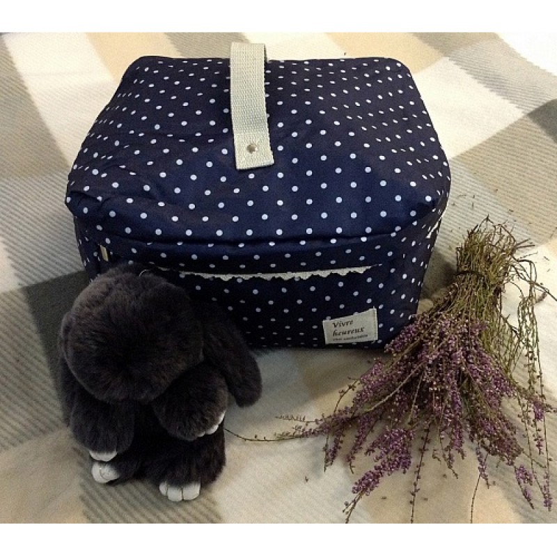 Косметичка Синий горох - красивый, практичный и вместительный подарок женщине, который будет служить отличным органайзером для аксессуаров в поездках, командировках и путешествиях.
