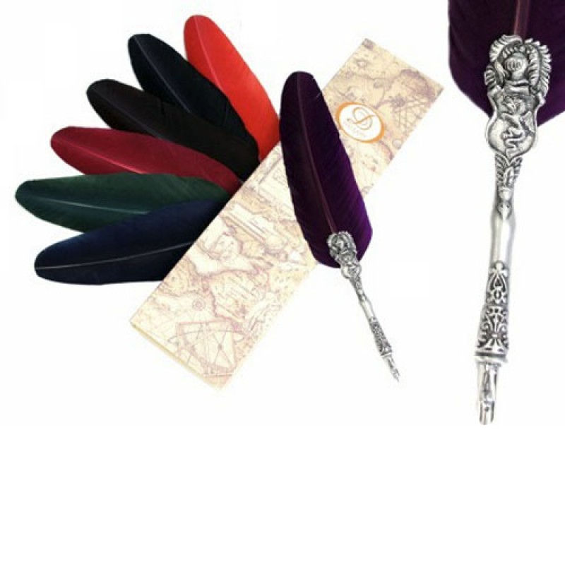Письменные наборы Dallaiti перенесут Вас в эпоху возрождения, когда все писали ничем иным, как пером. В нашем современном мире, так не хвататет писем, написанных на бумаге, стихов на салфетках. Перо для письма "Вдохновение" - яркий и оригинальный подарок для романтиков и лирков.