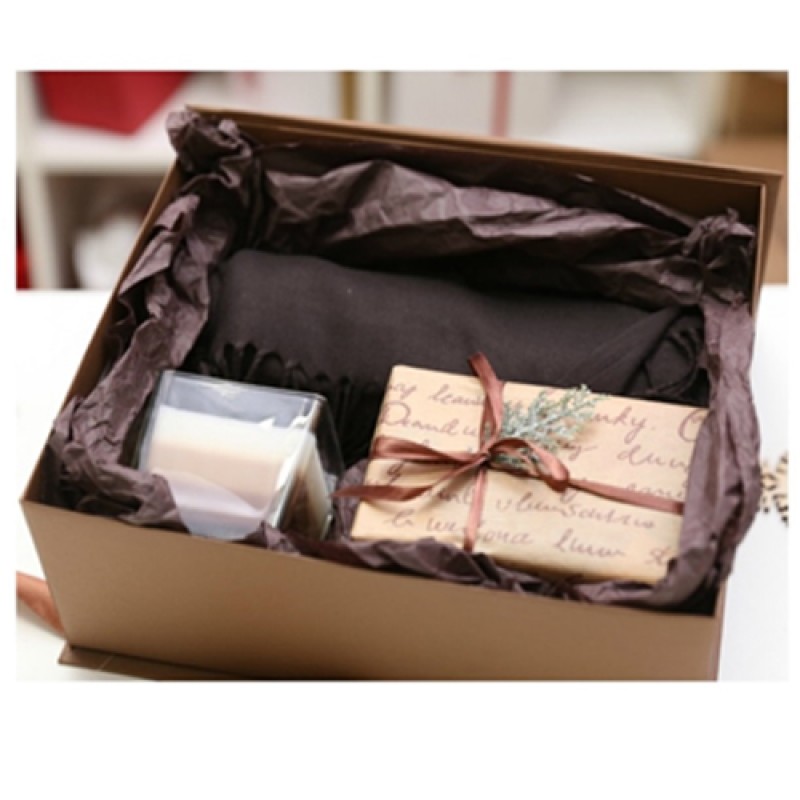 | Состав | В комплект входит: Кашемировый шарф - палантин коричневый Черный шоколад трюфель - 200г Свеча аромо Подарочная упаковка. |