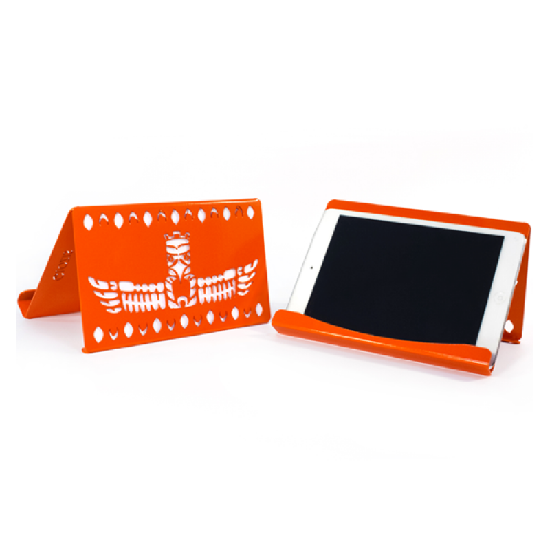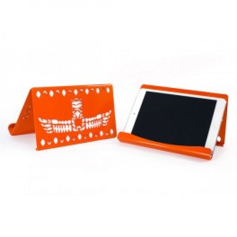 Подставка для планшета Glozis Totem продолжает серию аксессуаров в индейской тематике. В этой дизайнерской работе нашло воплощение культ поклонения тотему. Древние североамериканские племена веровали, что род или племя произошли от того или иного знака. Под ним могло пониматься отношение общества к представителю царства животных либо природного явления. На одной части подставки для планшета в стилизованной индейской традиции изображена хищная птица, расправившая в полете крылья, а на другой – знак солнца. Оранжевая цветовая гамма подчеркивает общий индейский дух, силу тотемного объекта. Подставка для планшета станет прекрасным подарком для мужской половины человечества, подчеркнет орлиный характер и мощь солнца. Металлический тип изделия делает аксессуар прочным к любым воздействиям, а также устойчивым на различных поверхностях.