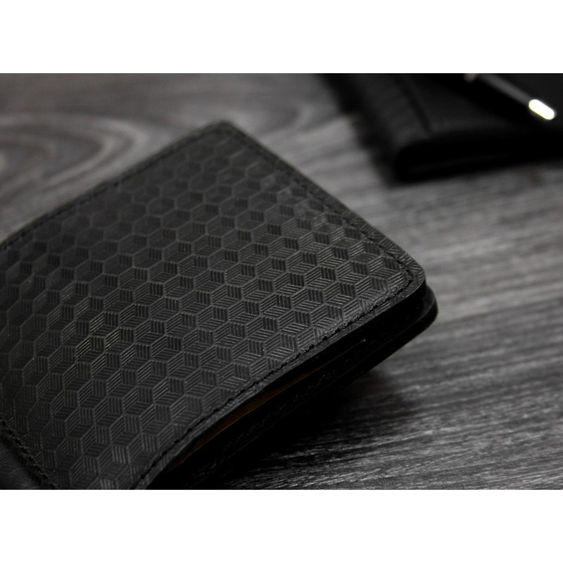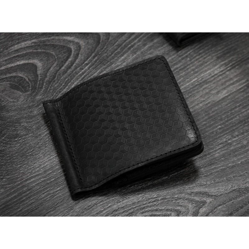 Коллекция «Карбон» названа в честь материала, который отличается высокой прочностью и жесткостью. По удельным характеристикам, карбон превосходит высокопрочную сталь. Эти изделия выберут люди, готовые покорять любые вершины на пределе своих возможностей, добивающиеся поставленных целей, вопреки обстоятельствам.Благодаря тиснению узора, изделия коллекции «Карбон» устойчивы к явным царапинам и потертостям. Если вы, ценитель кожаных аксессуаров и требовательные к вещам которые вас окружают – советуем обратить внимание именно на коллекцию «Карбон». С одной стороны, это банальный зажим для денег, а с другой - он супер-удобный, потому что в нем есть множество очень удобных кармашков для пластиковых карточек и для небольших записок-бумажек! Так что это не просто зажим для денег, а полноценное портмоне. Подходит для любых купюр, в том числе - для евро и долларов. Сделано полностью вручную в нашей мастерской в Киеве.