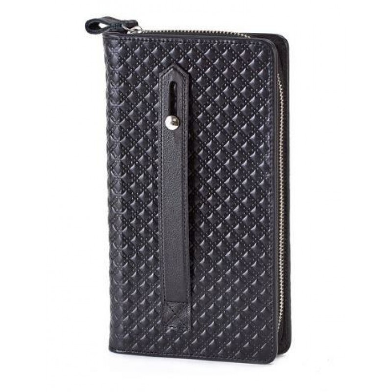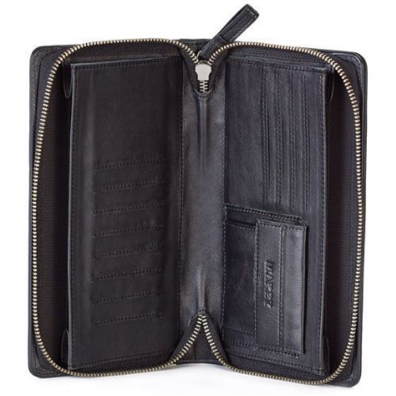 В предлагаемой модели портмоне бумажные купюры не сгибаясь размещаются в двух отделениях. Предусмотрены секции для кредитных карт, а также отделение для мелочи. Портмоне застегивается на молнию.