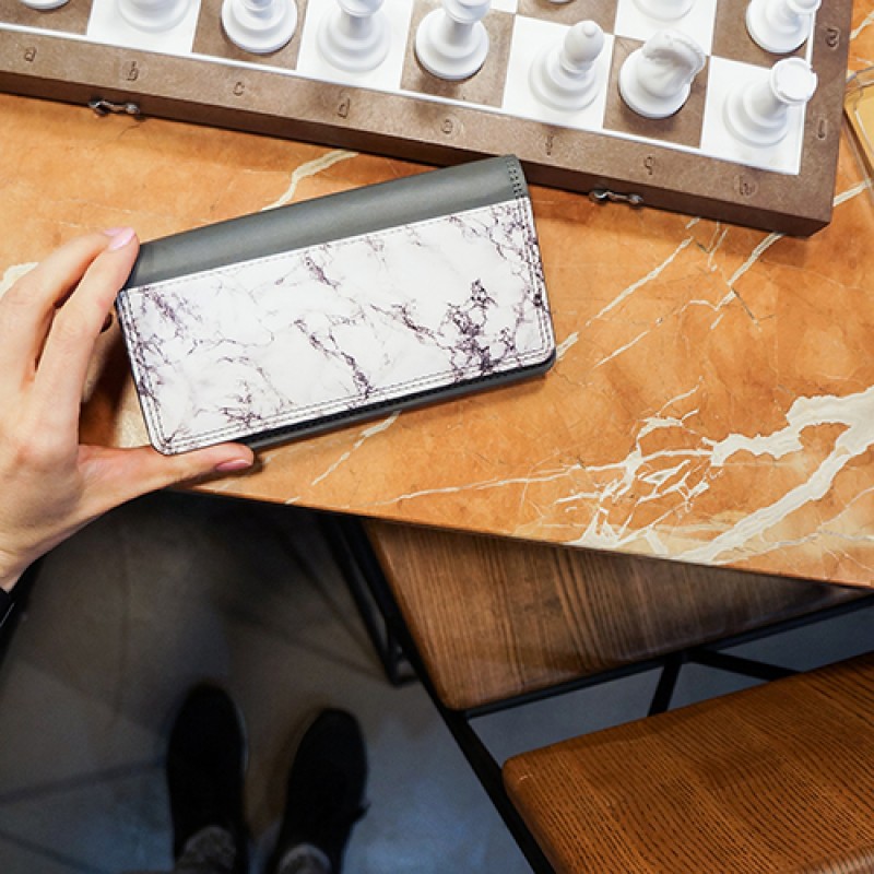 Основной цвет кошелька - графитовый. Легкость этого изделия - очень нужная деталь, которая не будет отягощать сумку или карман. Кошелек был сделан достаточно тонким, чтобы не занимать много места.