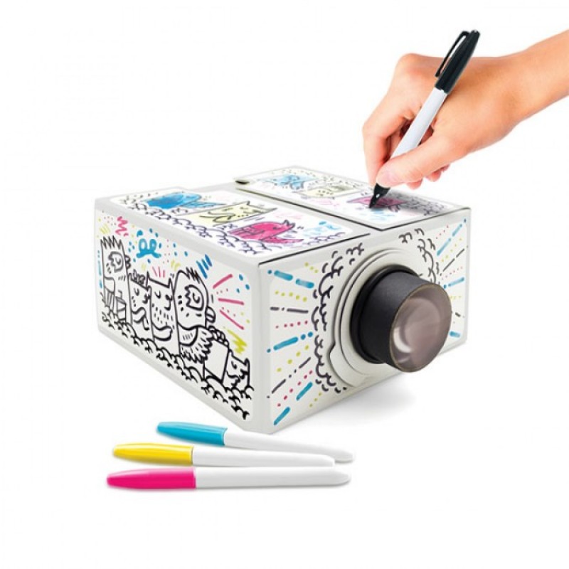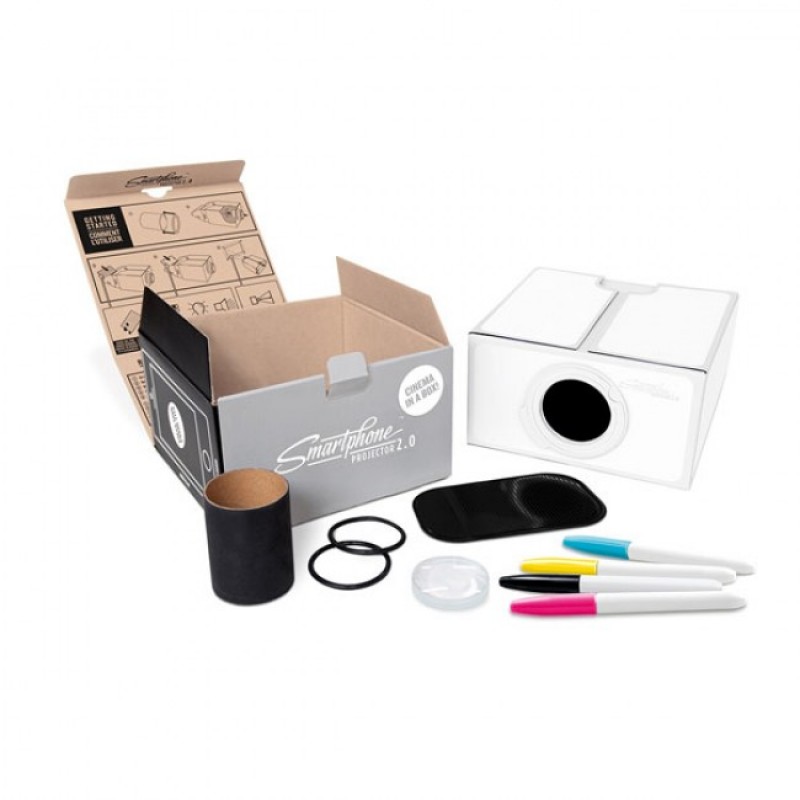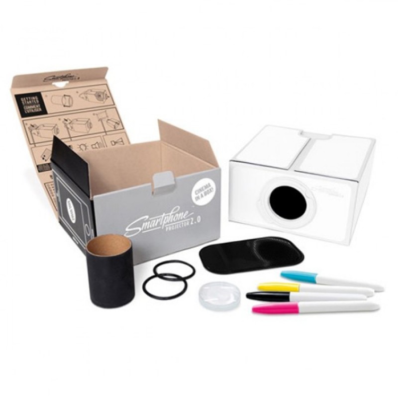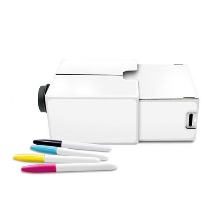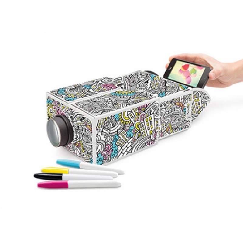И снова проектор для мобильных устройств Smartphone Projector 2.0 DIY от Luckies здесь для того, чтобы внести новых красок в повседневную жизнь возможностью перенести изображение с Вашего смартфона на любую ровную поверхность. А версия DIY (сокращенно от «do it yourself» – «сделай сам» по-английски) позволит персонализировать внешний вид проектора на Ваш вкус. Новый проектор для айфона и смартфонов на базе Андроид – Smartphone Projector 2.0 DIY от Luckies позволит Вам проявить себя. В комплекте поставки - четыре маркера разных цветов, а сам проектор продается в чистом белом цвете. Хотите ли Вы отдать его на «растерзание» детям или самому проявить художественные способности, будьте уверены, Ваш проектор будет уникален и неповторим. Основные характеристики: Комплект поставки включает 4 маркера разных цветов (черный, розовый, синий, желтый) Проектор подходит для использования с красками, цветными карандашами и наклейками (не включены в комплект) Увеличение экрана до x8 Настраиваемый фокус Подходит для смартфонов размеров Plus - до 8см х 16см Совместим со смартфонами на базе iOS, Android и Windows Phone Для лучшего эффекта использовать в полной темноте и на белой, ровной поверхности Изображение с телефона попадает через объектив, поэтому текст будет отображаться в обратном порядке Прекрасный подарок для тех, кто интересуется современными гаджетами Проектор выполнен из высококачественного картона, линзы изготовлены из стекла Уникальный высокотехнологичный подарок Поставляется в фирменной подарочной упаковке от Luckies Оригинальный продукт бренда Luckies