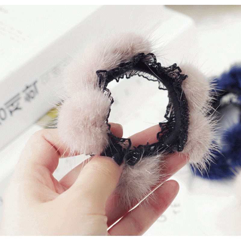 Теги: Резинка для волос с натуральным мехом норки. Молочный., MD25188.4, 6794-02, Украшения
