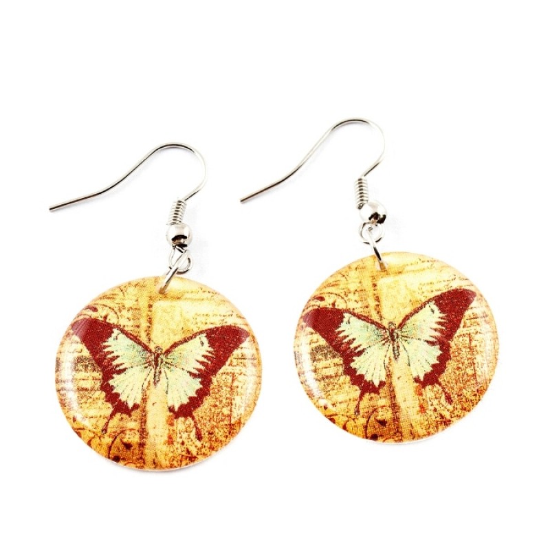 Сережки ручной работы с яркими и интересными картинками подчеркнут неординарность и креативность девушки. Фурнитура сережек гиппоаллергенная, сплав материала не содержит никеля.