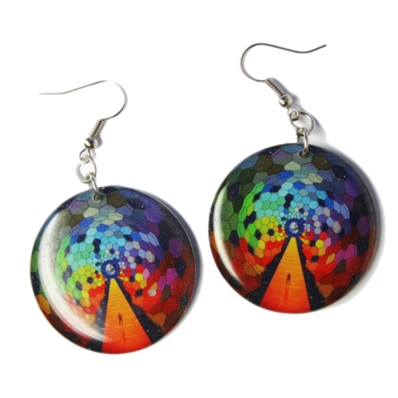 Сережки ручной работы с яркими и интересными картинками подчеркнут неординарность и креативность девушки. Фурнитура сережек гиппоаллергенная, сплав материала не содержит никеля.