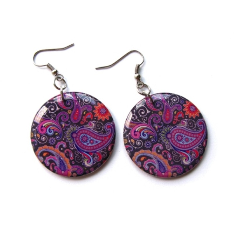 Сережки ручной работы с яркими и интересными картинками подчеркнут неординарность и креативность девушки. Фурнитура сережек гиппоаллергенная, сплав материала не содержит никеля.