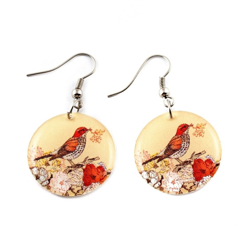 Сережки ручной работы с яркими и интересными картинками подчеркнут неординарность и креативность девушки. Фурнитура сережек гиппоаллергенная, сплав материала не содержит никеля.