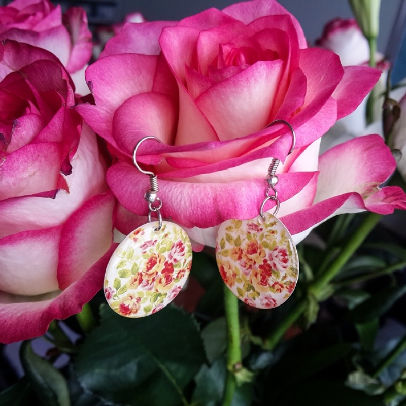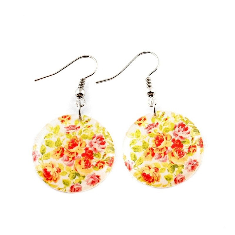 Сережки ручной работы с яркими и интересными картинками подчеркнут неординарность и креативность девушки. Фурнитура сережек гиппоаллергенная, сплав материала не содержит никеля.