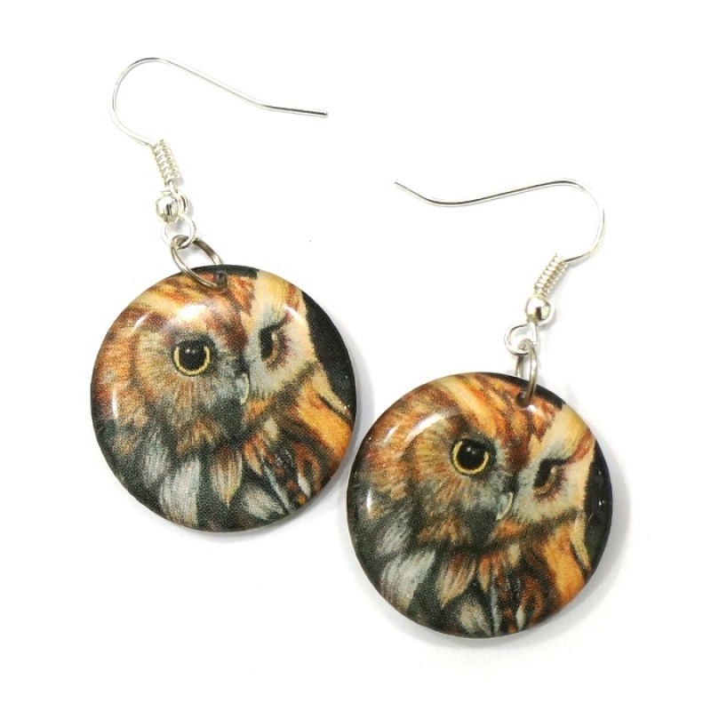 Сережки ручной работы с яркими и интересными картинками подчеркнут неординарность и креативность девушки. Фурнитура сережек гиппоаллергенная, сплав материала не содержит никеля.