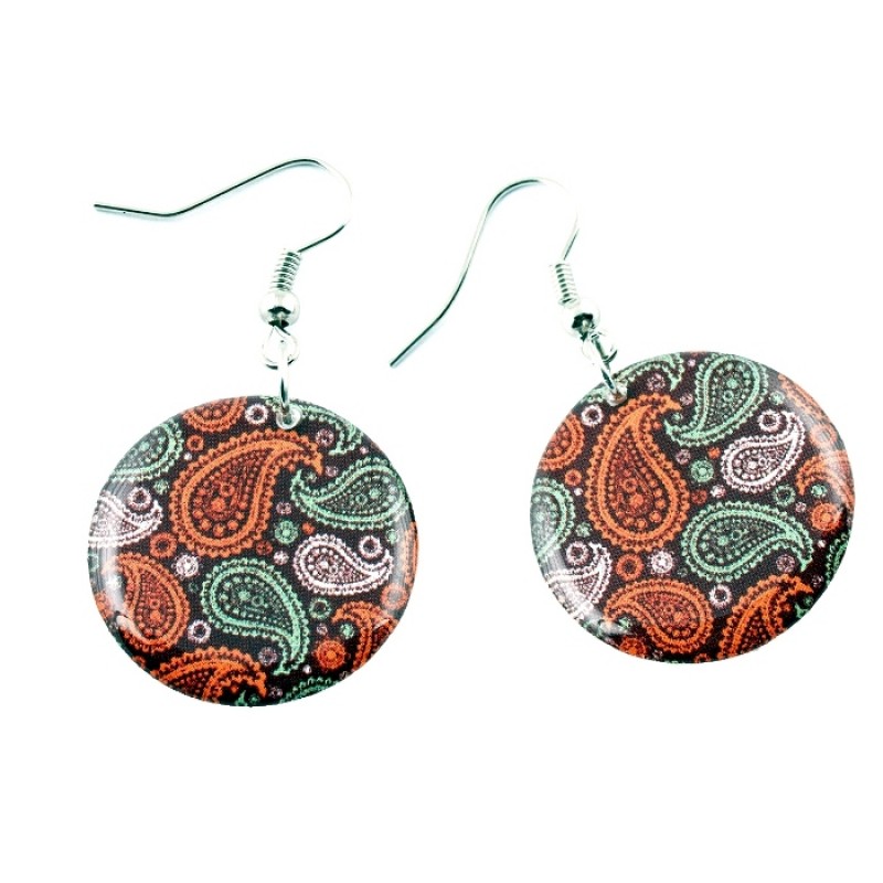 Сережки ручной работы с яркими и интересными картинками подчеркнут неординарность и креативность девушки. Фурнитура сережек гиппоаллергенная, сплав материала не содержит никеля.