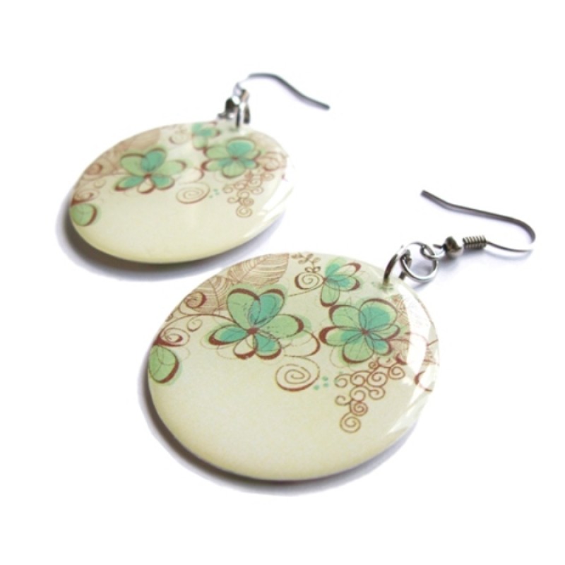 Сережки ручной работы с яркими и интересными картинками подчеркнут неординарность и креативность девушки. Фурнитура сережек гиппоаллергенная, сплав материала не содержит никеля.
