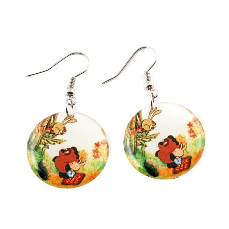 Сережки ручной работы с яркими и интересными картинками подчеркнут неординарность и креативность девушки. Фурнитура сережек гиппоаллергенная, сплав материала не содержит никеля.